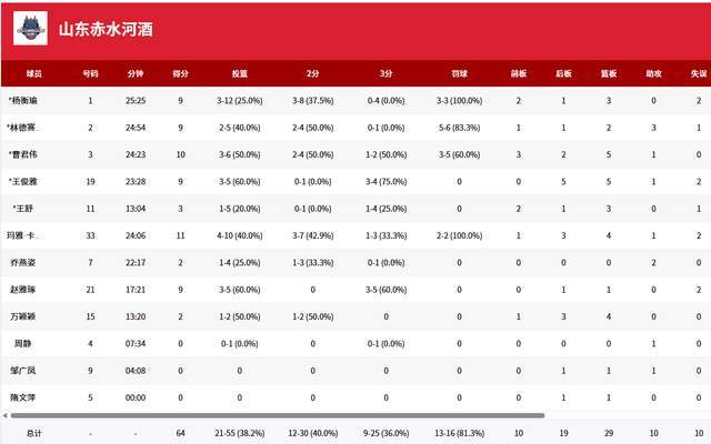 其一,投篮命中率太差!这是球队赖以生存的基本线,没想到,就这场比赛来看,全队的命中率不足4成,55投21中,只有38.2%。如此低的命中率,想赢球就太难了。