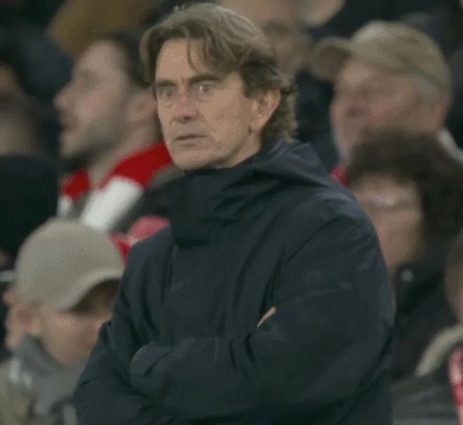 其实比赛开场后第3分钟的一次配合,就展示出了阿森纳比赛取胜欲望之高以及整体套路完备,埃泽在10号位站着、由边路的队友给到传球之后,阿森纳数人包抄到禁区之中制造威胁。而埃泽用一个非常巧妙的挑传、给到了队友的抽射。虽然被维卡里奥扑出,不过却证明了两队状态差别。弗兰克弟子们只有奋力堵抢眼的资格,却很难打出反制。
