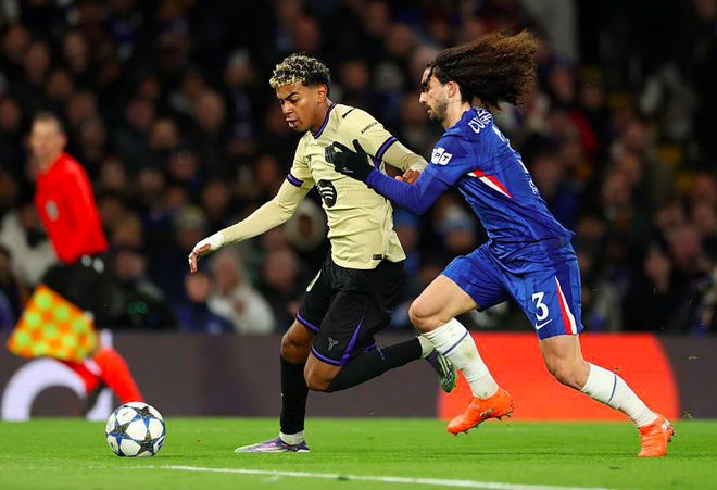客场作战的巴萨频频使用造越位的战术,难免马失前蹄,在进攻端,至少前30分钟,亚马尔没有什么表现。