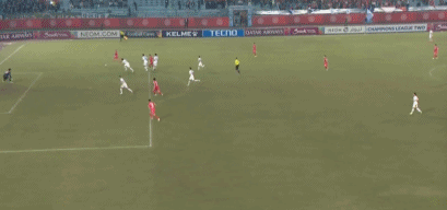 第54分钟,恩加德乌禁区内横传,球打在莱奥-阿图尔的身上击中门柱,张健智随即解围。