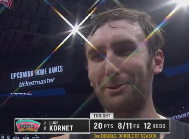 今天面对奇才,科内特大发神威,首发出战不到28分钟,11投8中拿下20分12篮板1封盖,其中包括6个前场篮板,正负值是全场最高的+13。