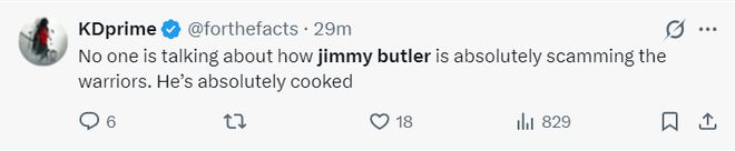 勇士球迷:吉米-巴特勒是 NBA 普遍认为言过其实的球员,而且得薪酬过高。